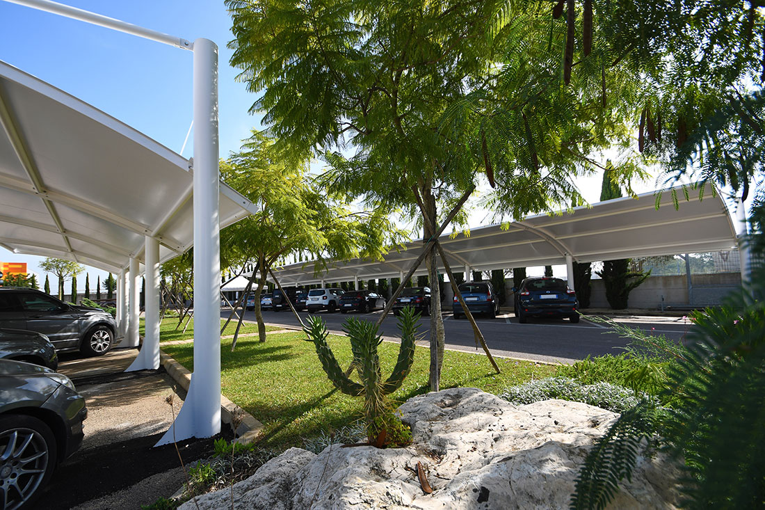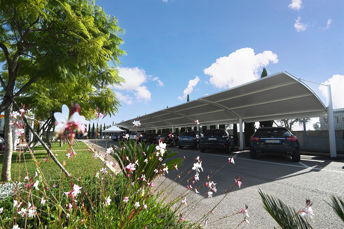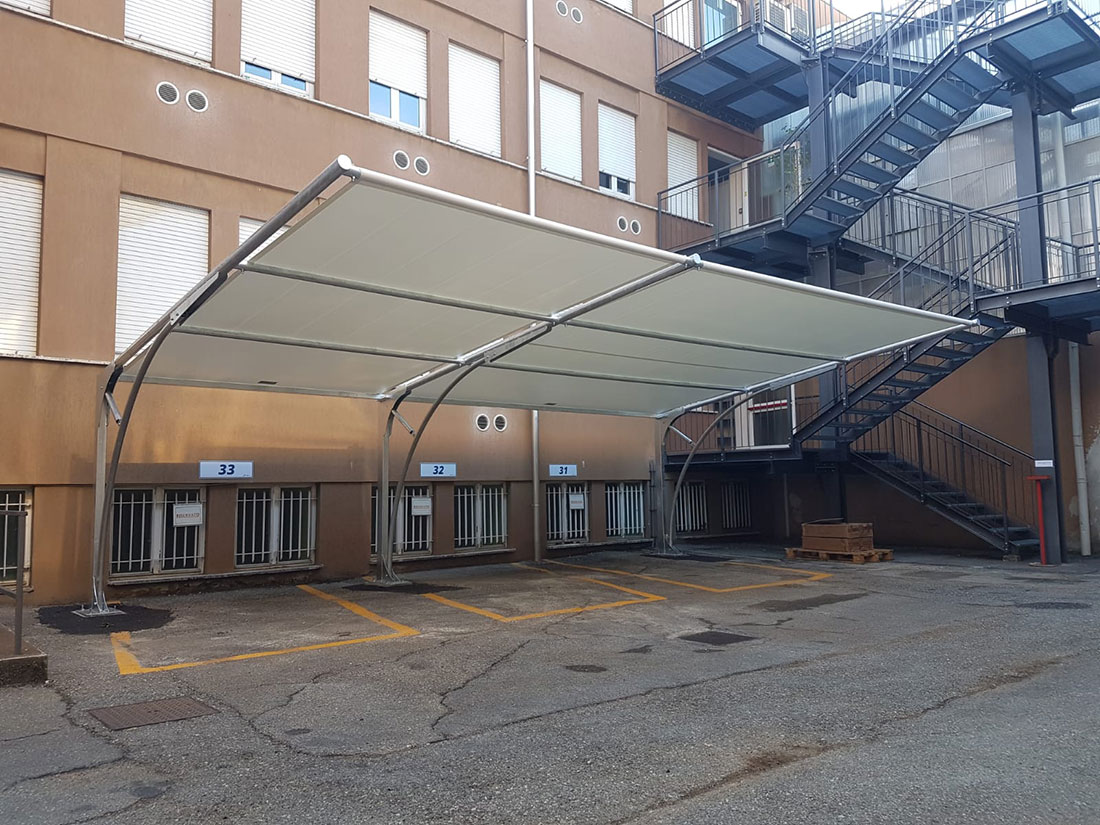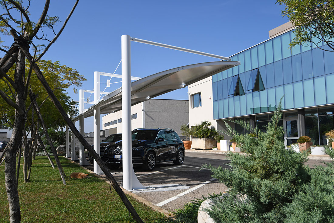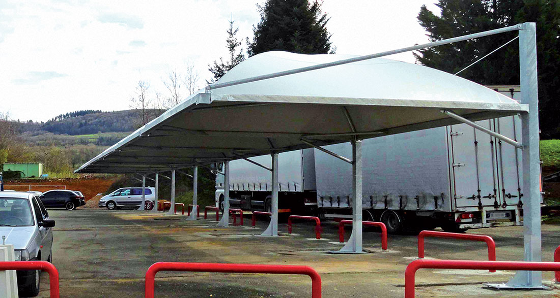 Un carport industriale deve offrire riparo efficace dagli agenti atmosferici.
