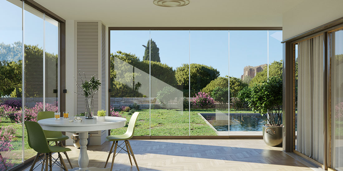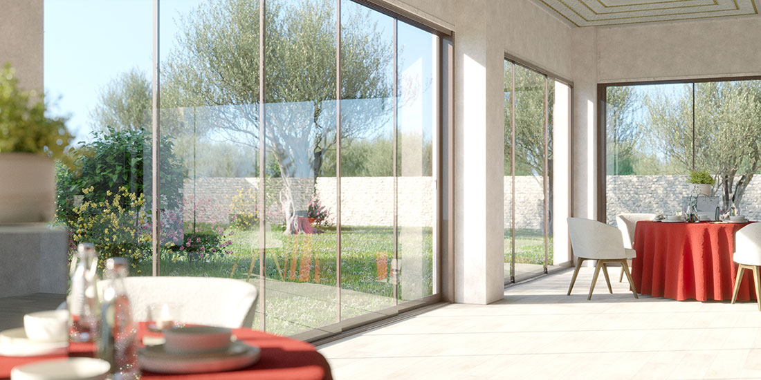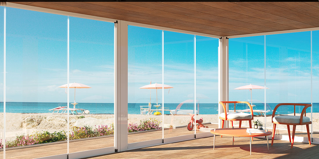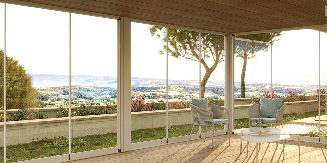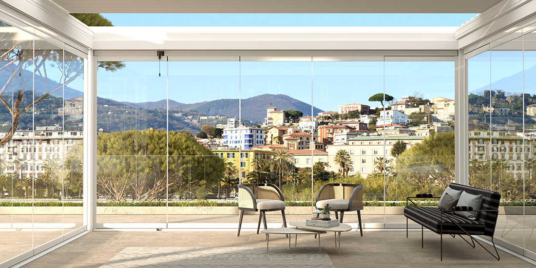 Le vetrate panoramiche Effedi permettono di proteggere gli spazi esterni senza rinunciare alla luce e alla vista.